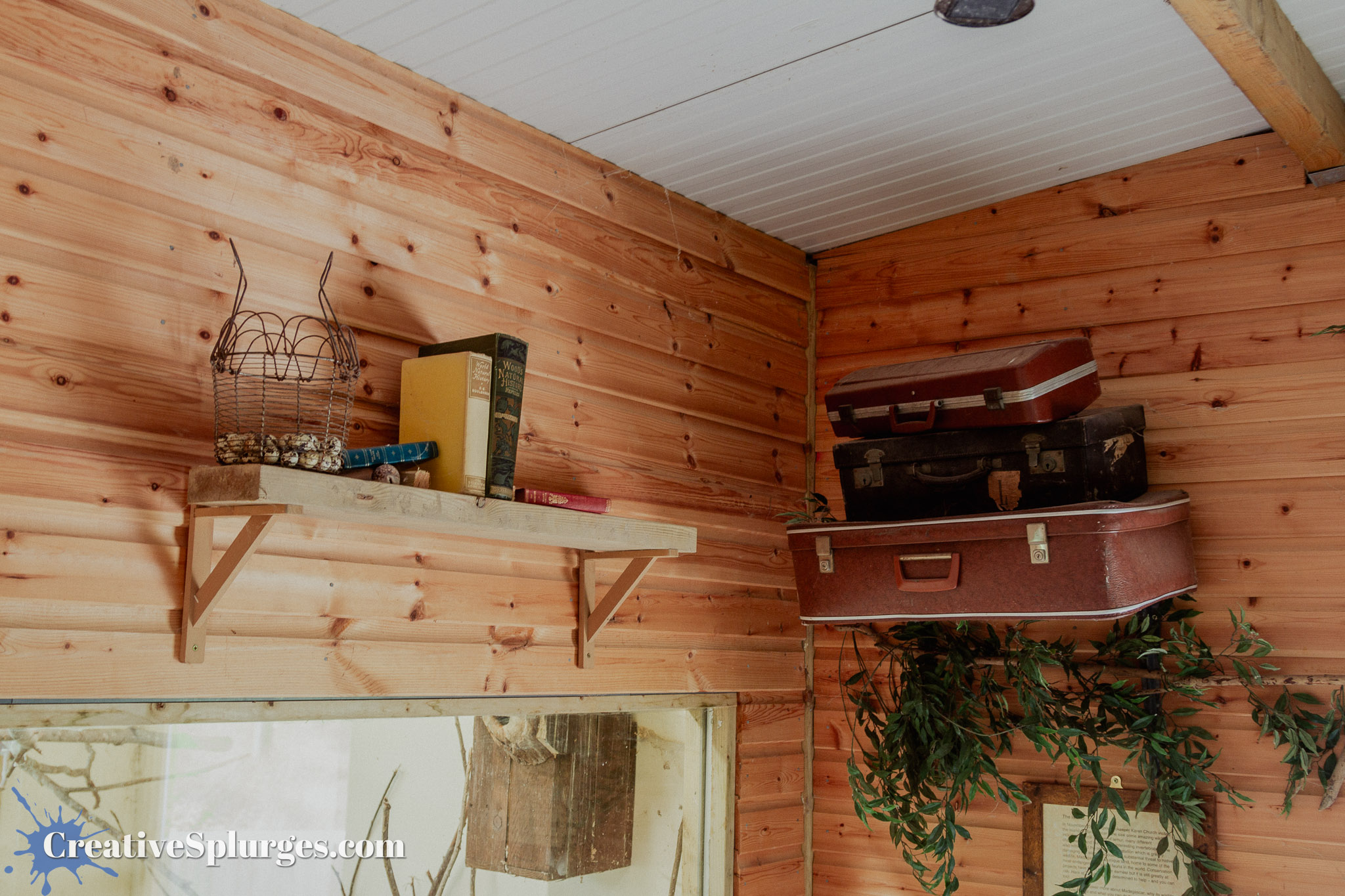 Some of the animal houses are nicely decorated with things reminiscent of Victorian explorers of old, like this assortment of shelves, books and luggage.