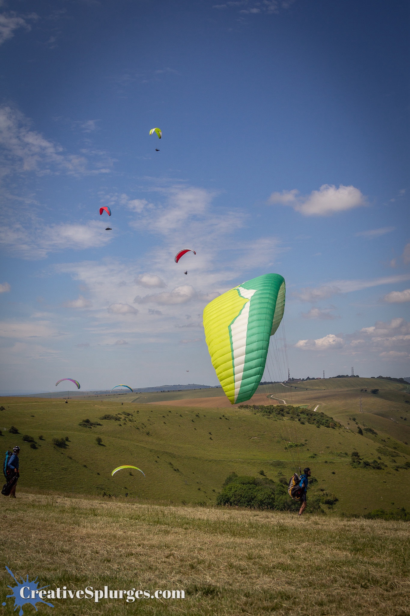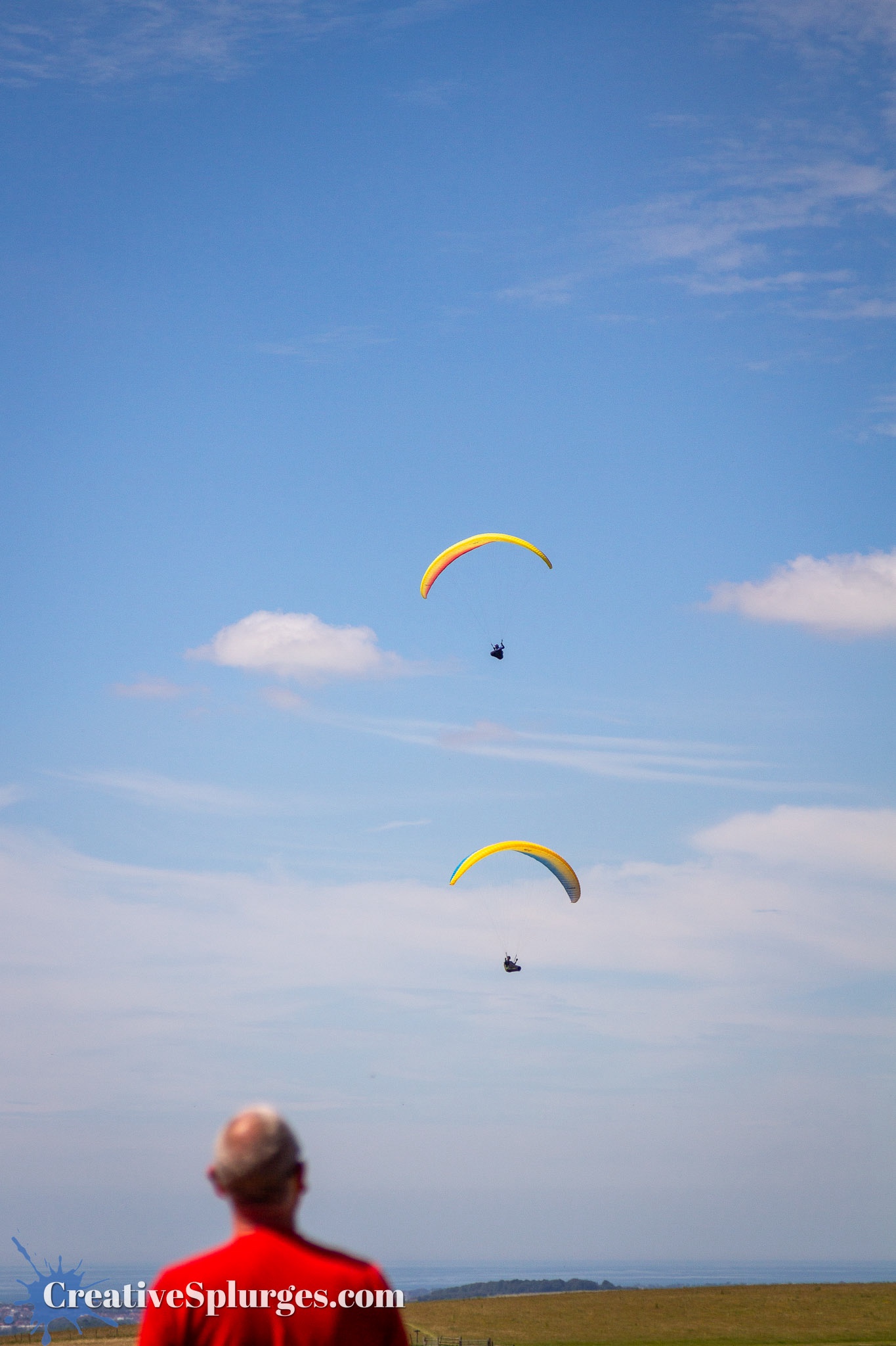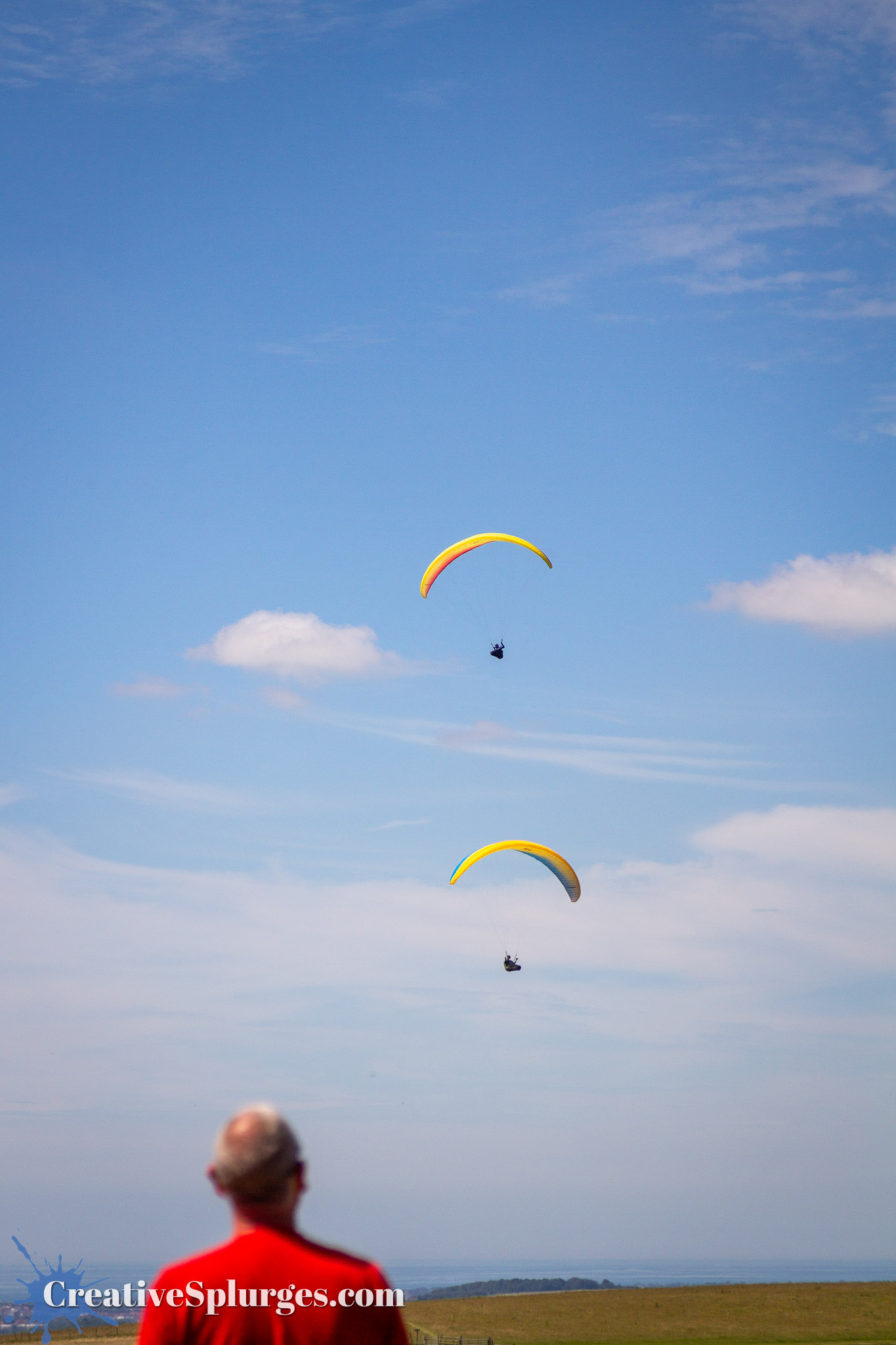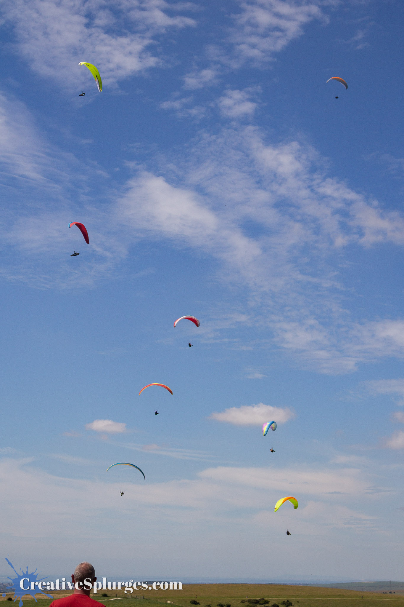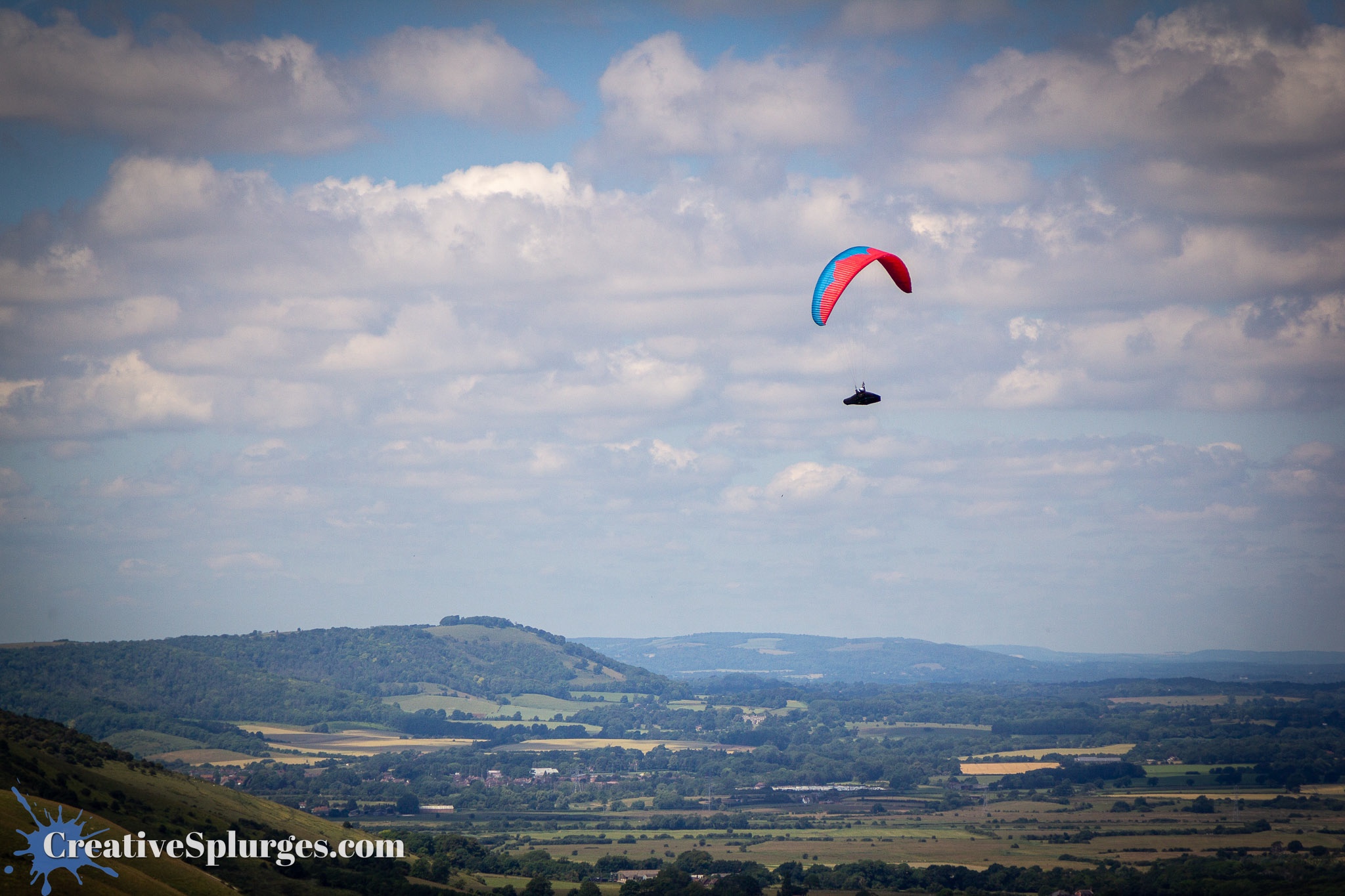 Devil’s Dyke is a spot on the South Downs, a little further along the South Downs Way than we explored on our previous visit. Technically Devil’s Dyke is the valley, despite the car park and pub of the same name being on top of the hill. The spot is popular with hang gliders, and indeed that was the first thing that greeted us when we arrived.