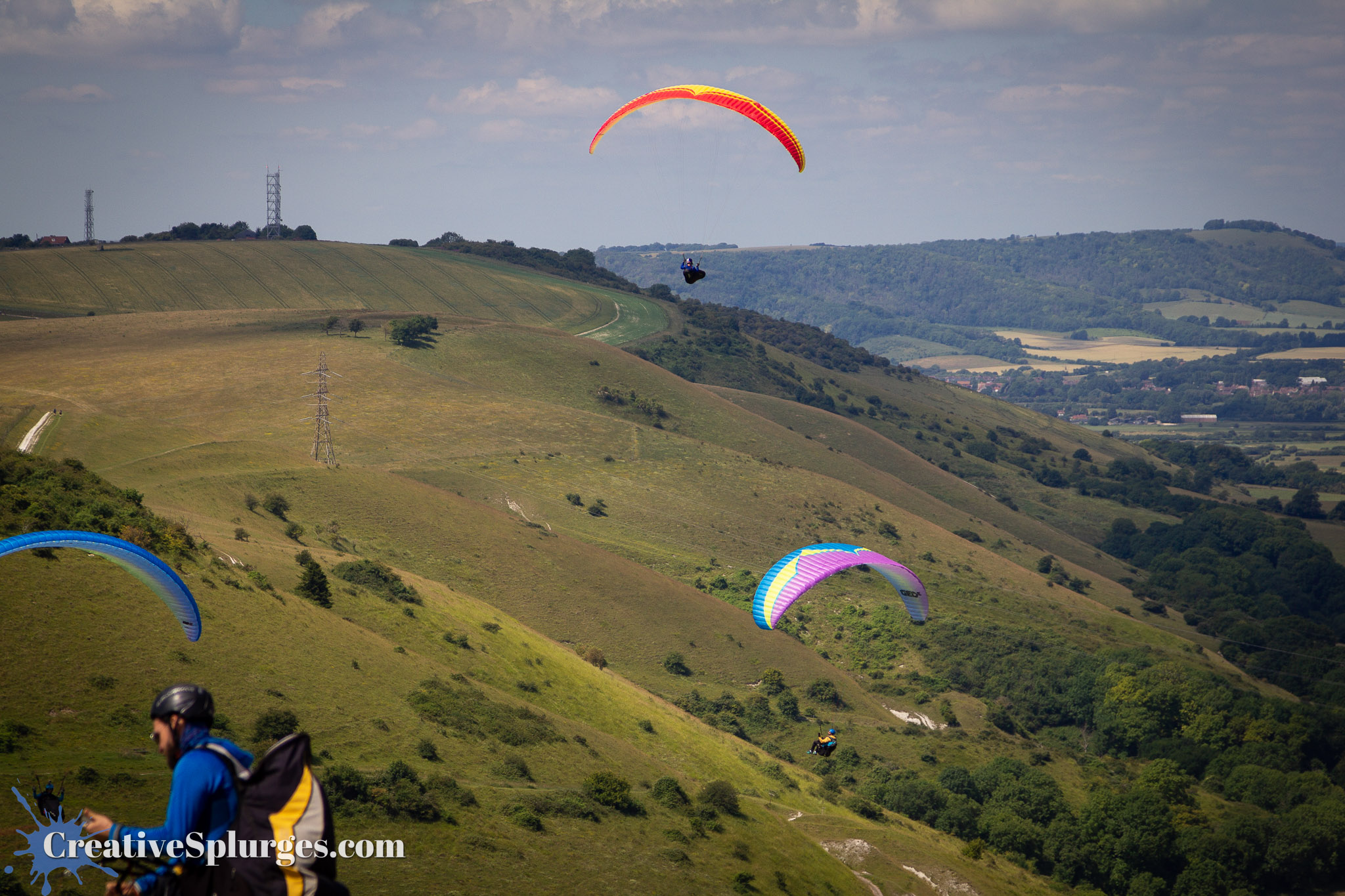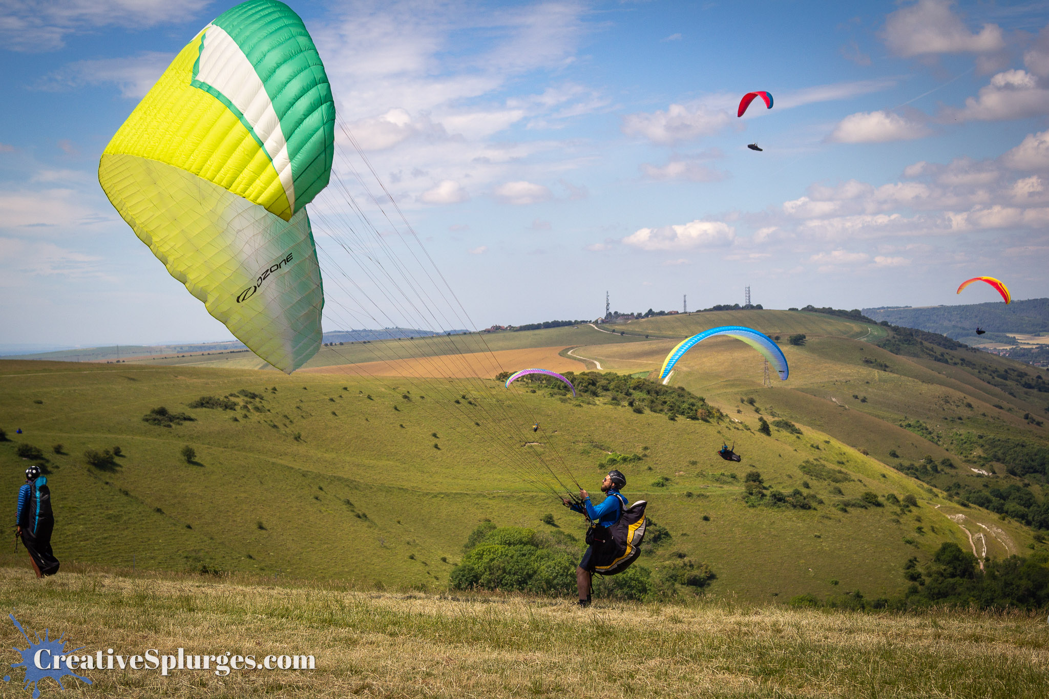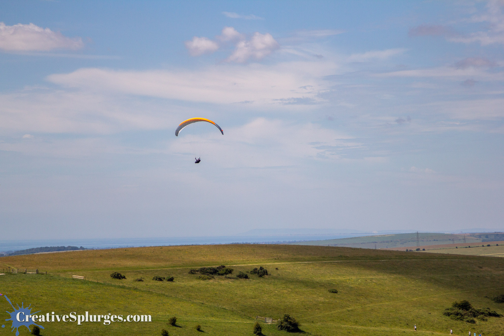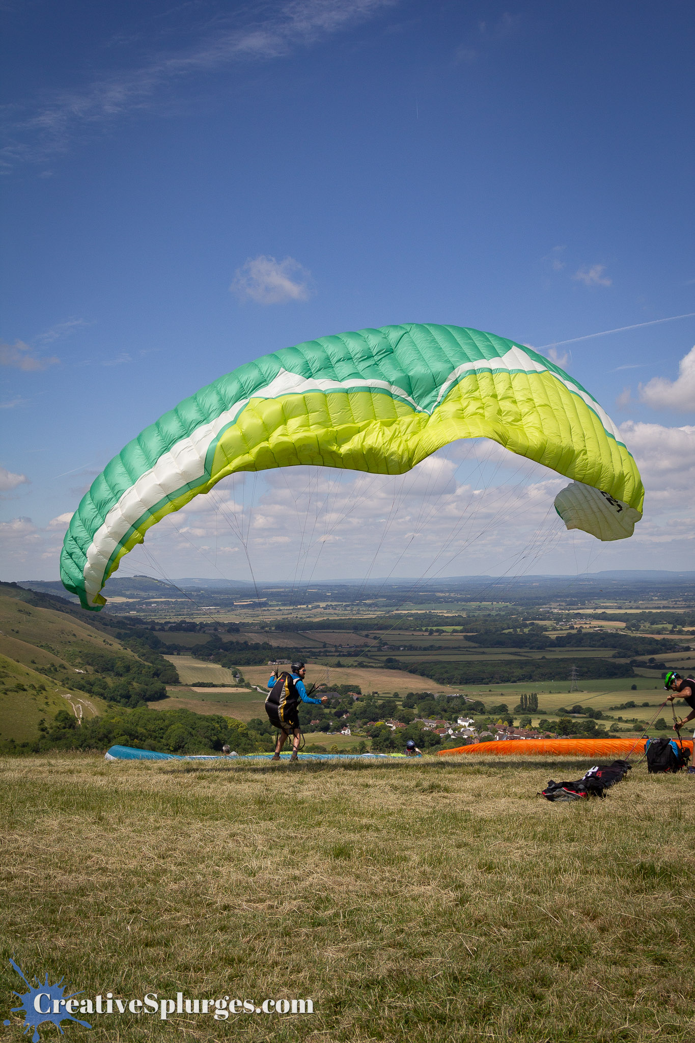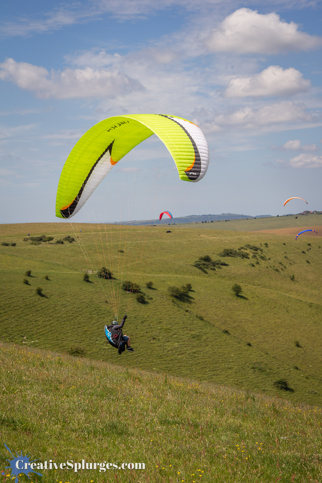 Devil’s Dyke is a spot on the South Downs, a little further along the South Downs Way than we explored on our previous visit. Technically Devil’s Dyke is the valley, despite the car park and pub of the same name being on top of the hill. The spot is popular with hang gliders, and indeed that was the first thing that greeted us when we arrived.