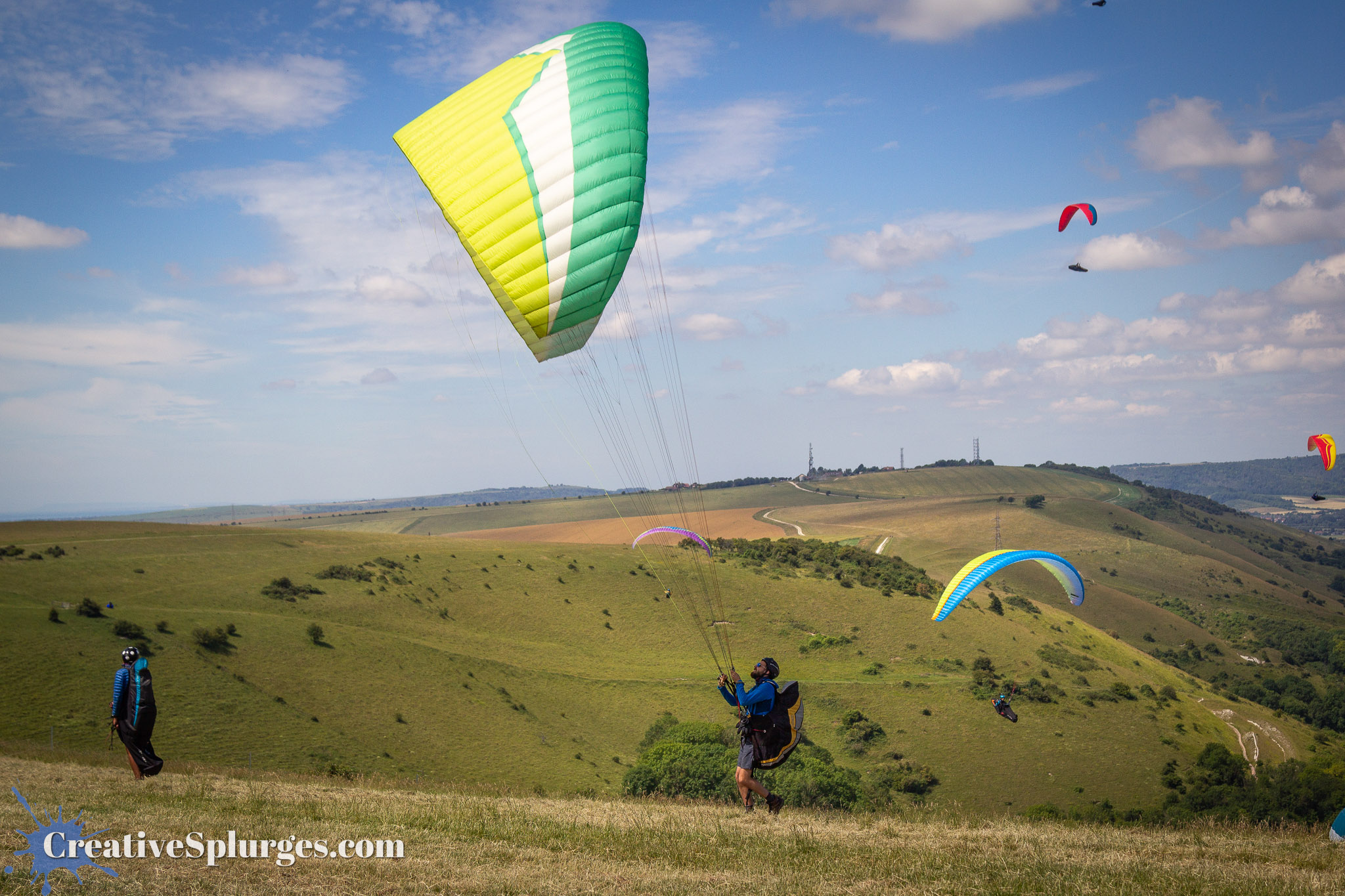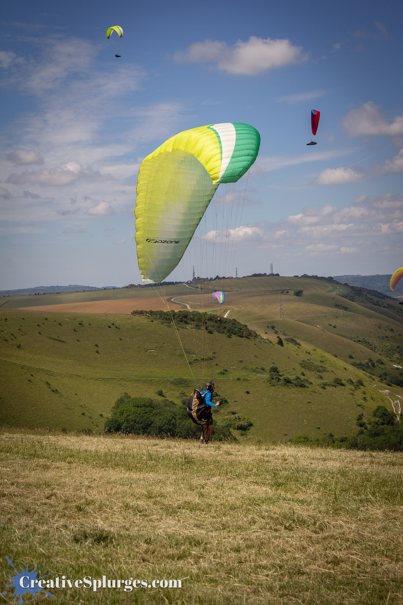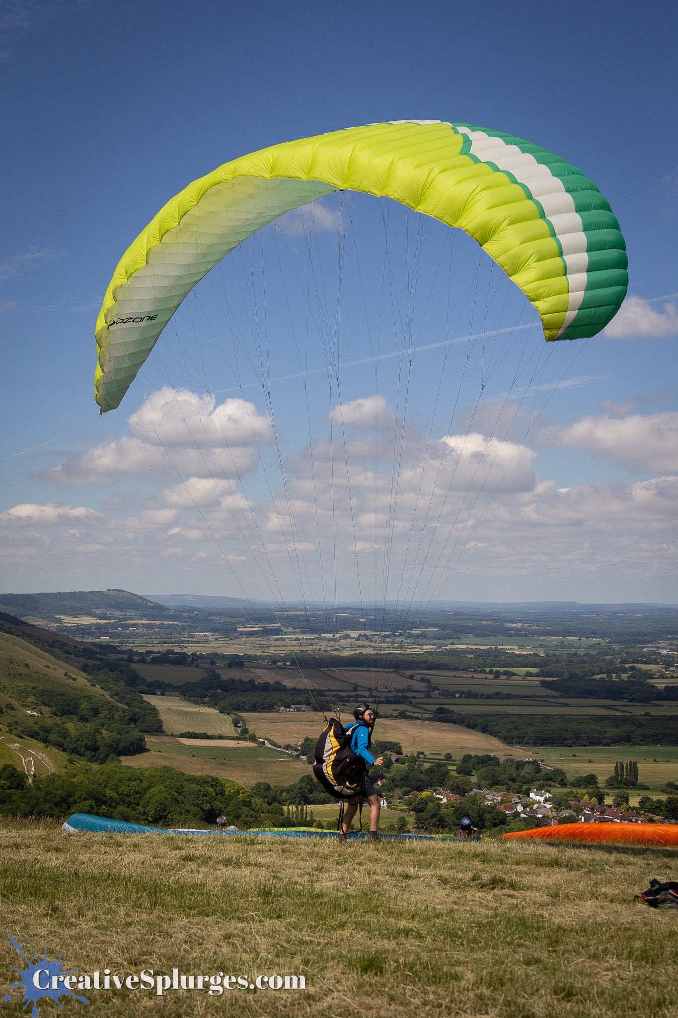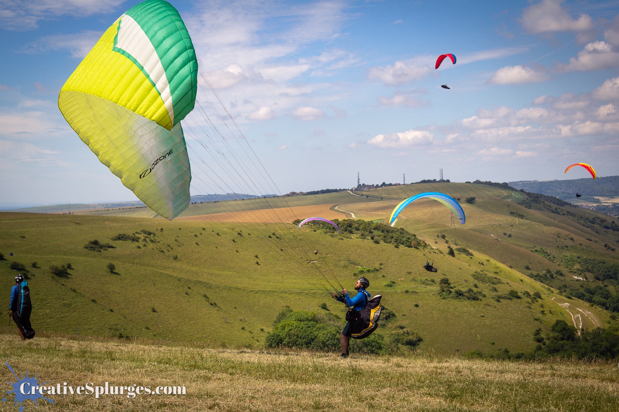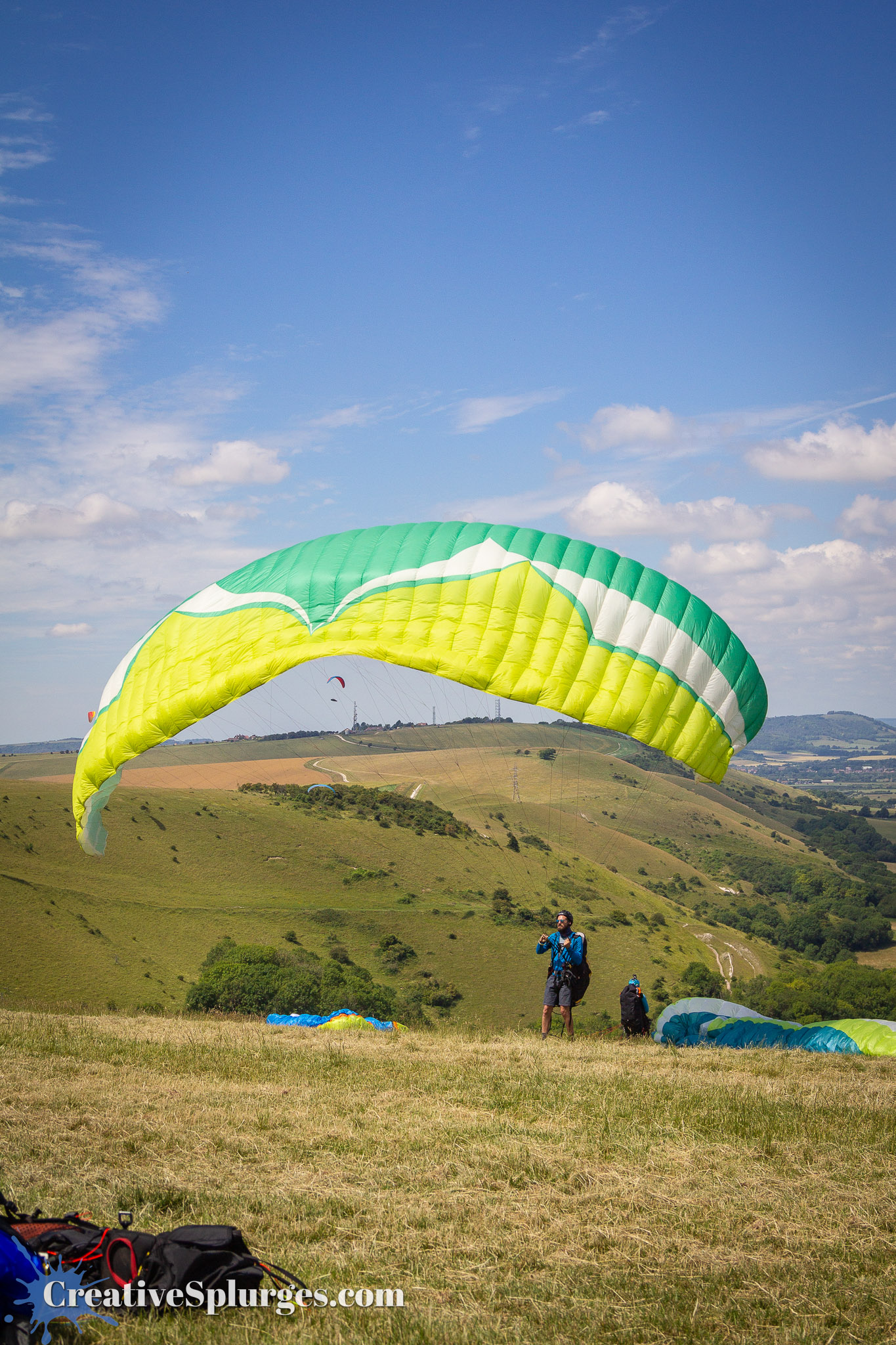 Devil’s Dyke is a spot on the South Downs, a little further along the South Downs Way than we explored on our previous visit. Technically Devil’s Dyke is the valley, despite the car park and pub of the same name being on top of the hill. The spot is popular with hang gliders, and indeed that was the first thing that greeted us when we arrived.