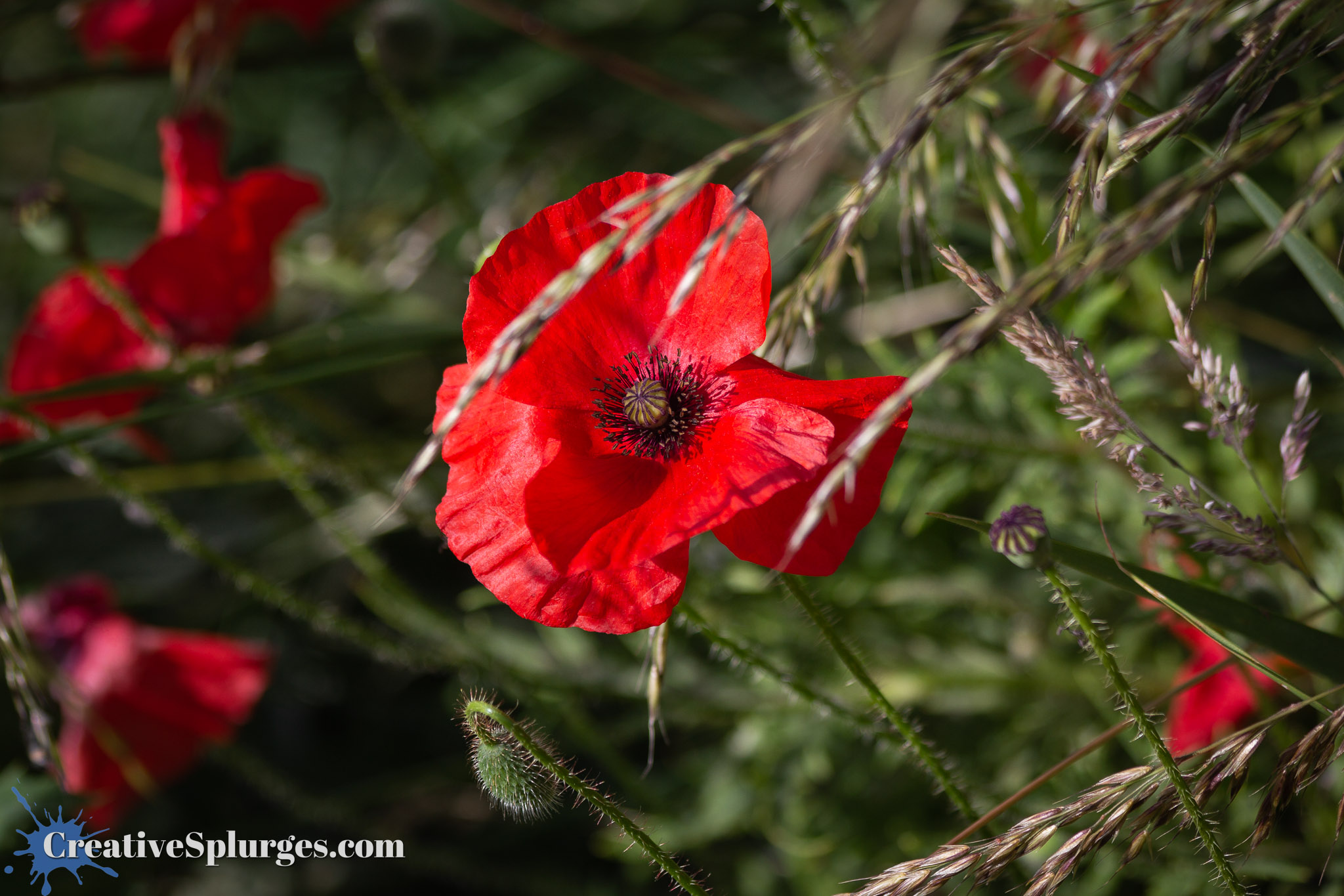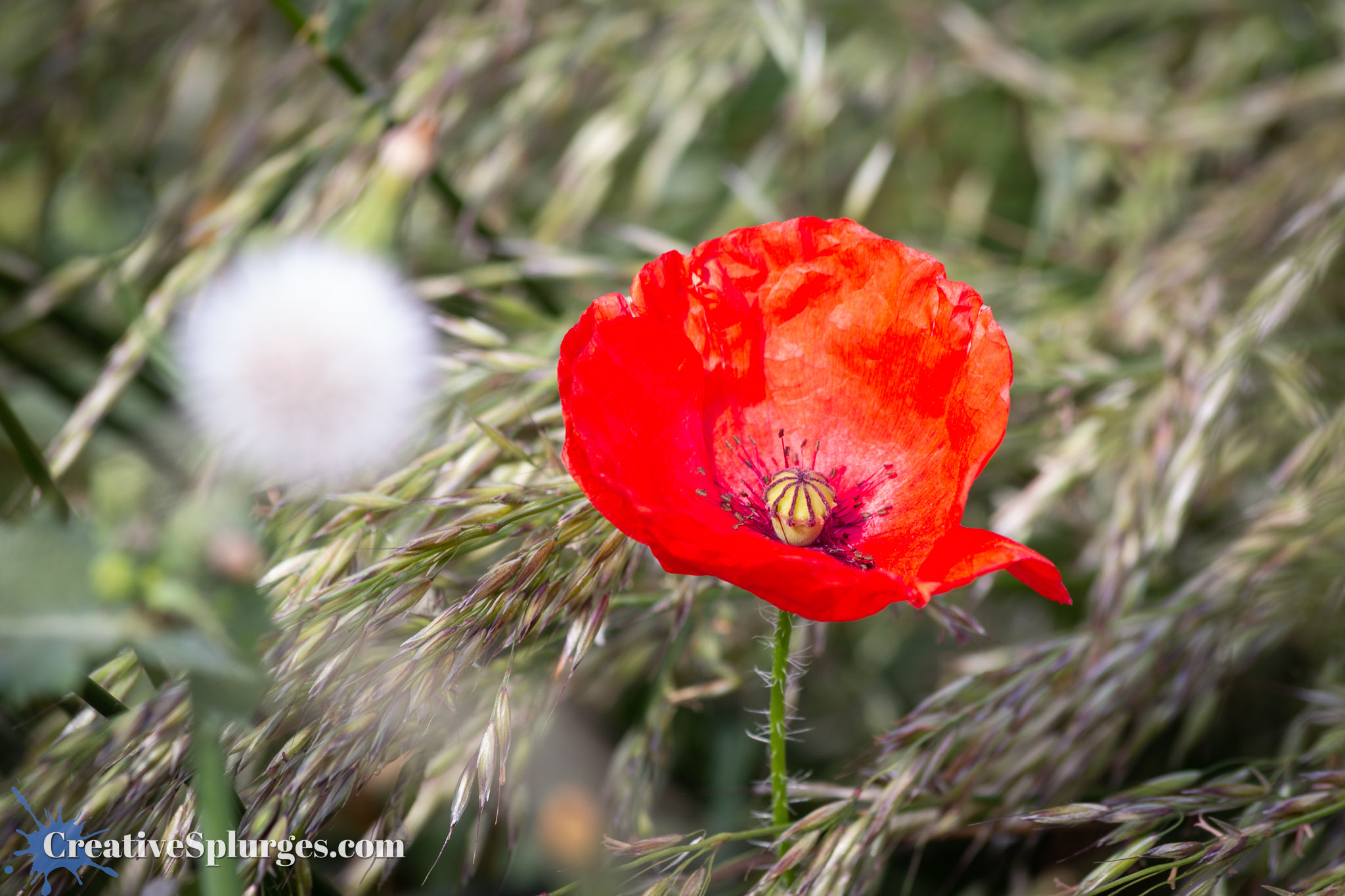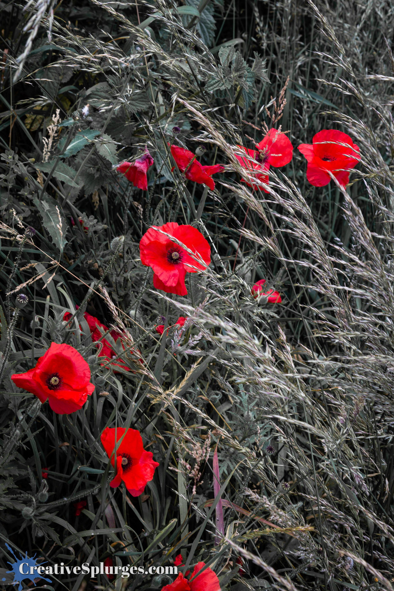 There were also some poppies. Or at least things that looked like poppies. For this first photo, I desaturated the colours other than red to bring them out a little more.