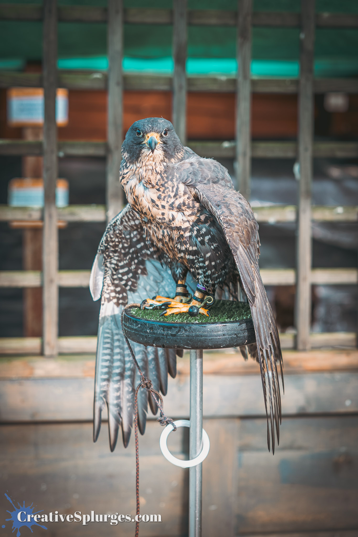 Unfortunately this gorgeous Chilean blue eagle was in front of a dull black tarp.
