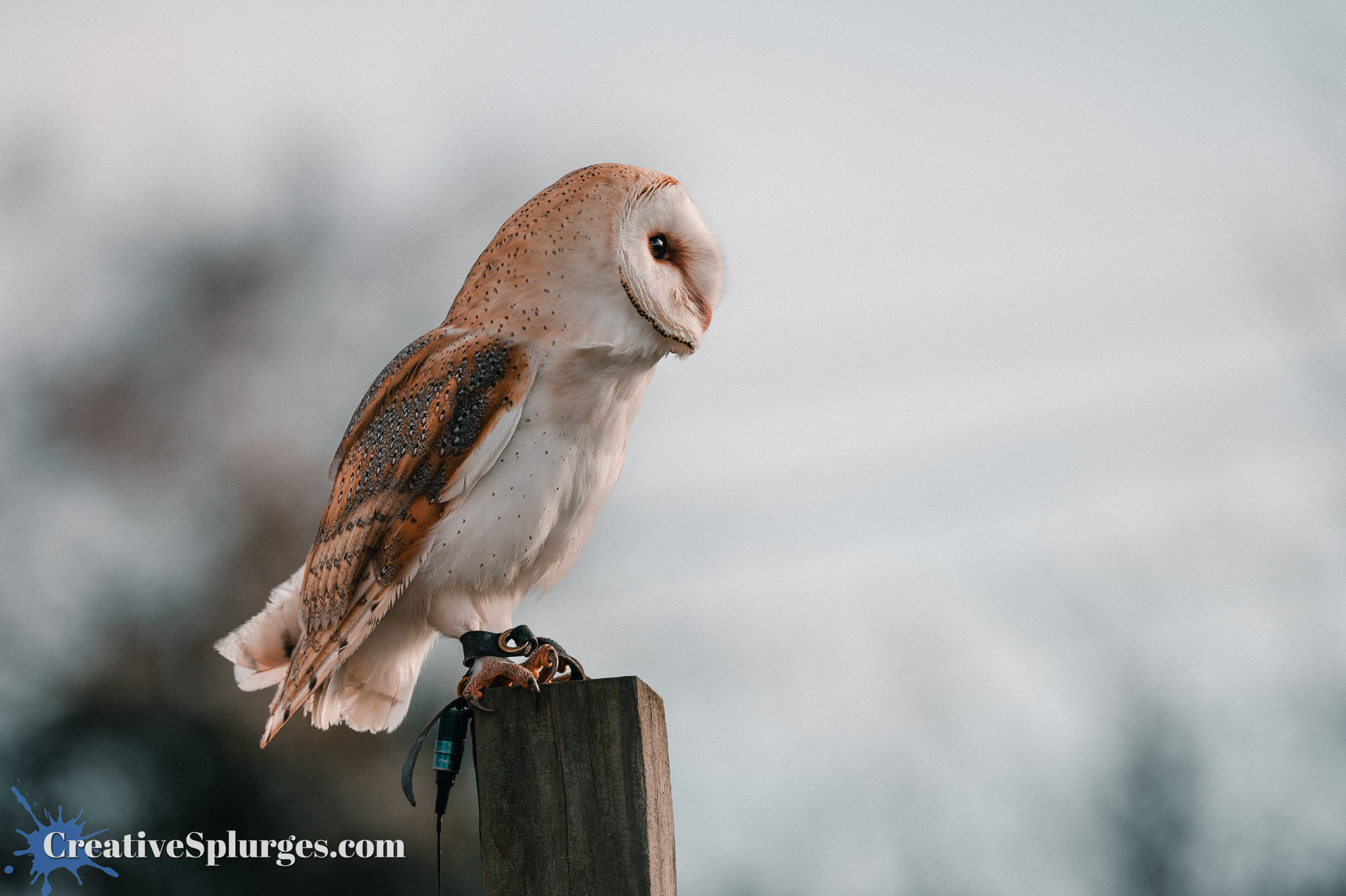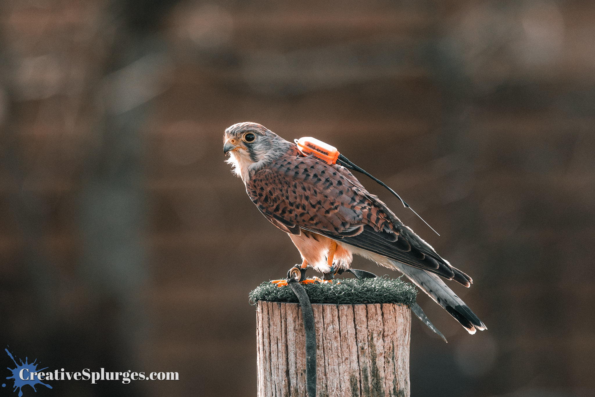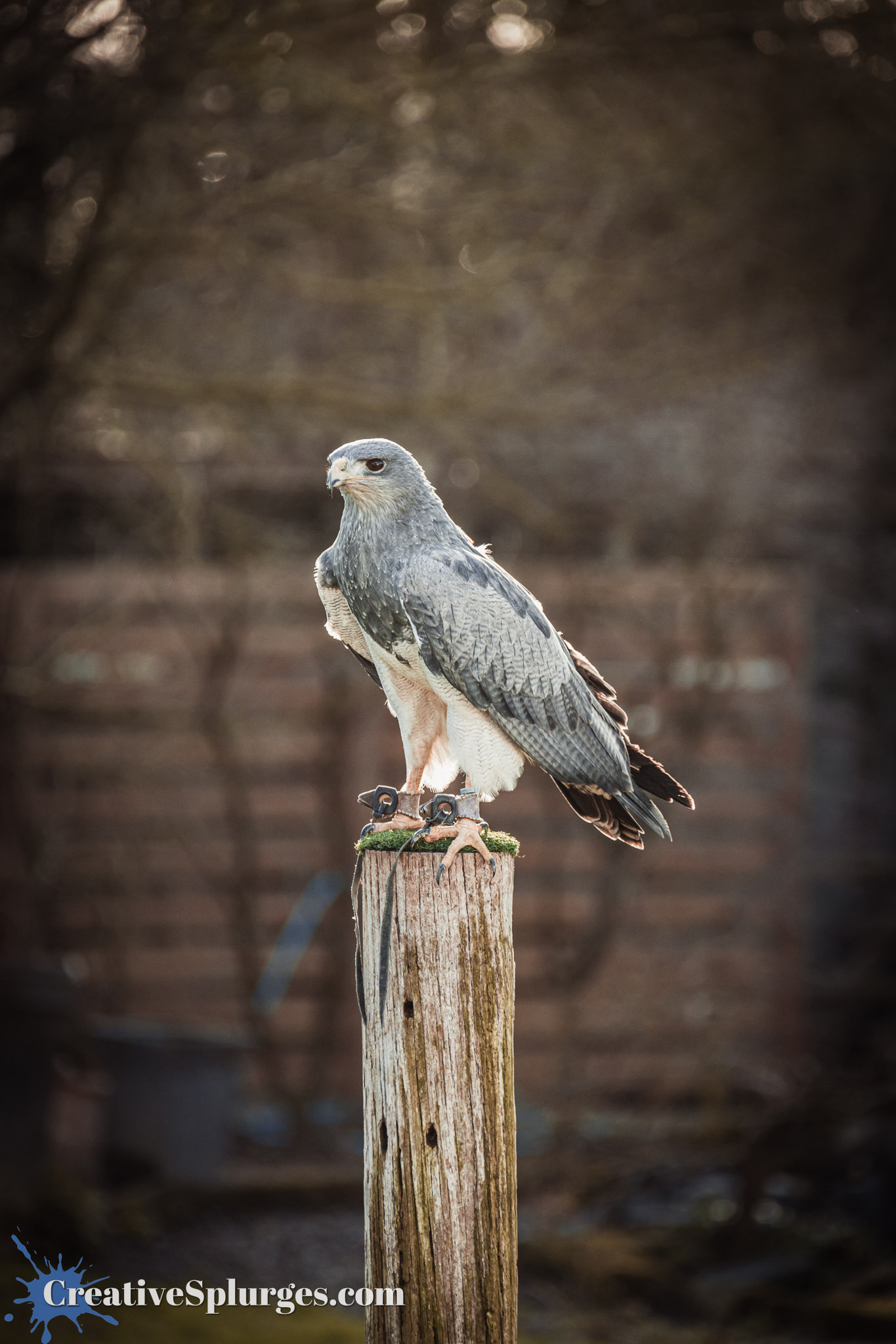 The barn owl was given a break, and a hawk was allowed out to play. She quickly sat on the backlit perch.