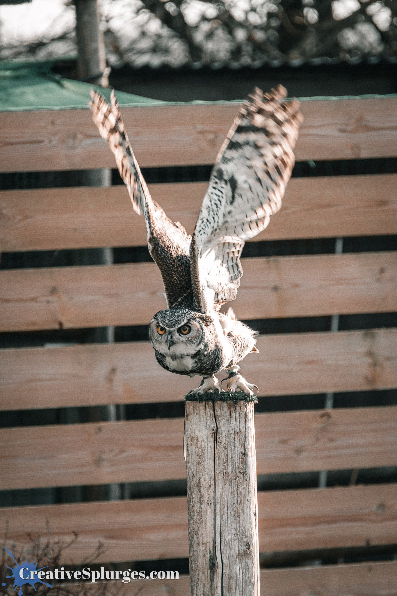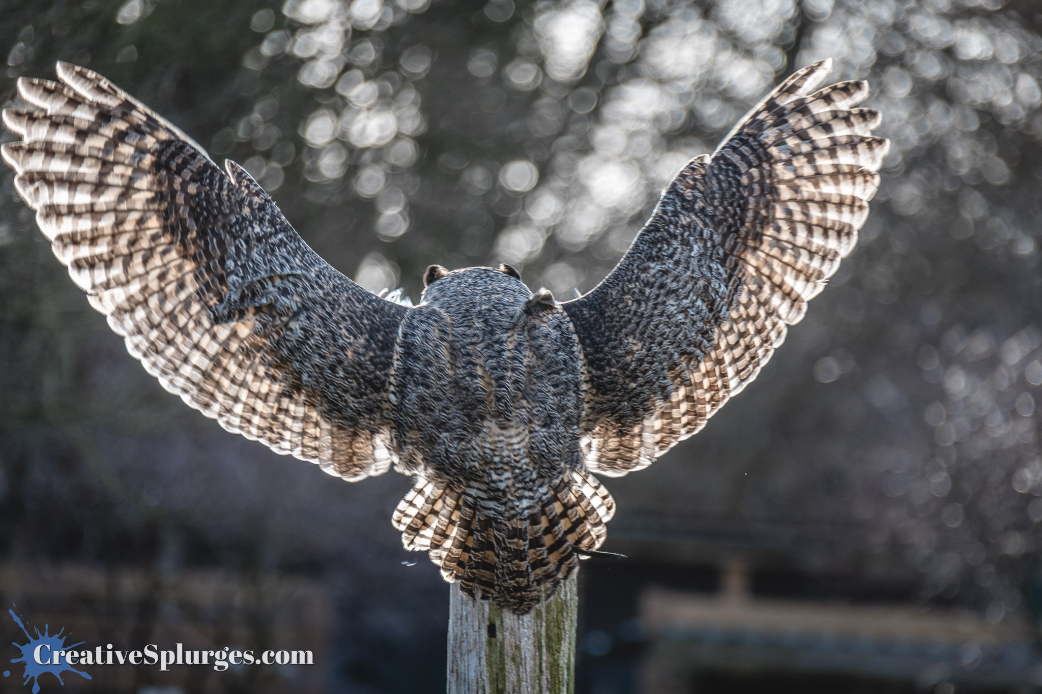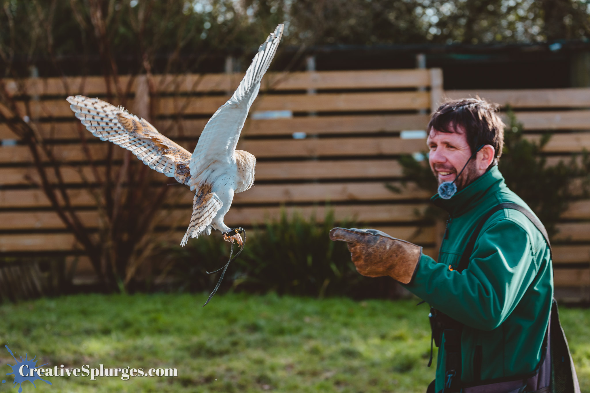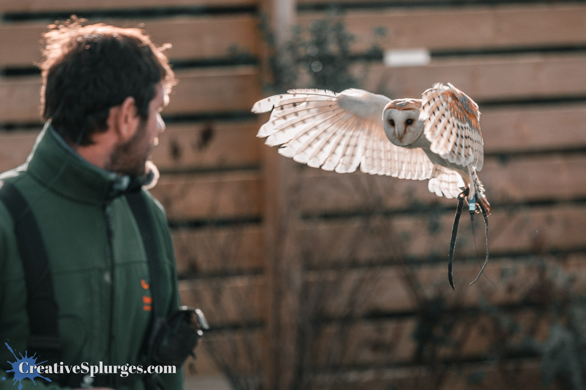 Again we were facing the sun for this display, but it meant when she landed this owl’s wings were beautifully backlit,