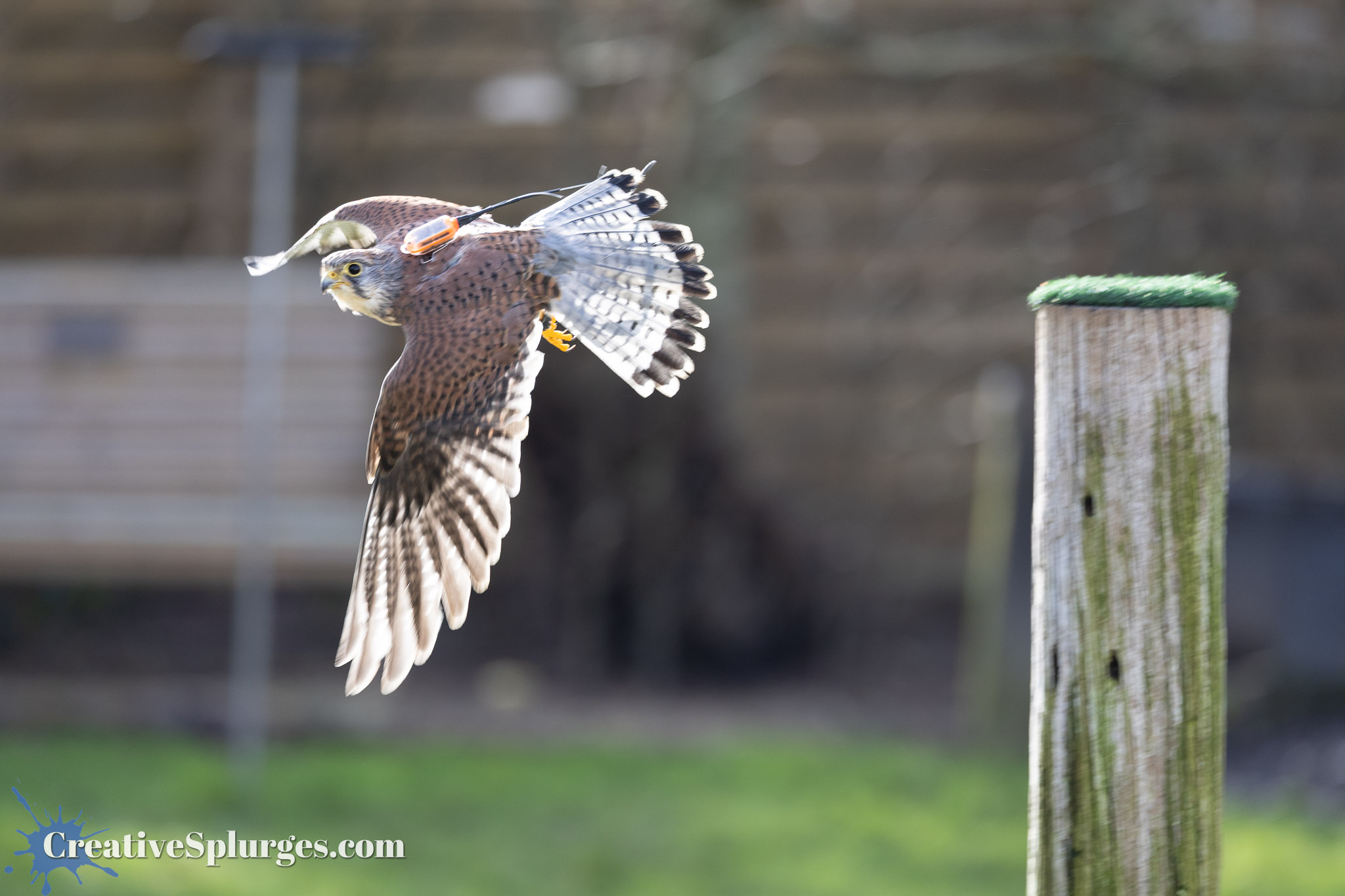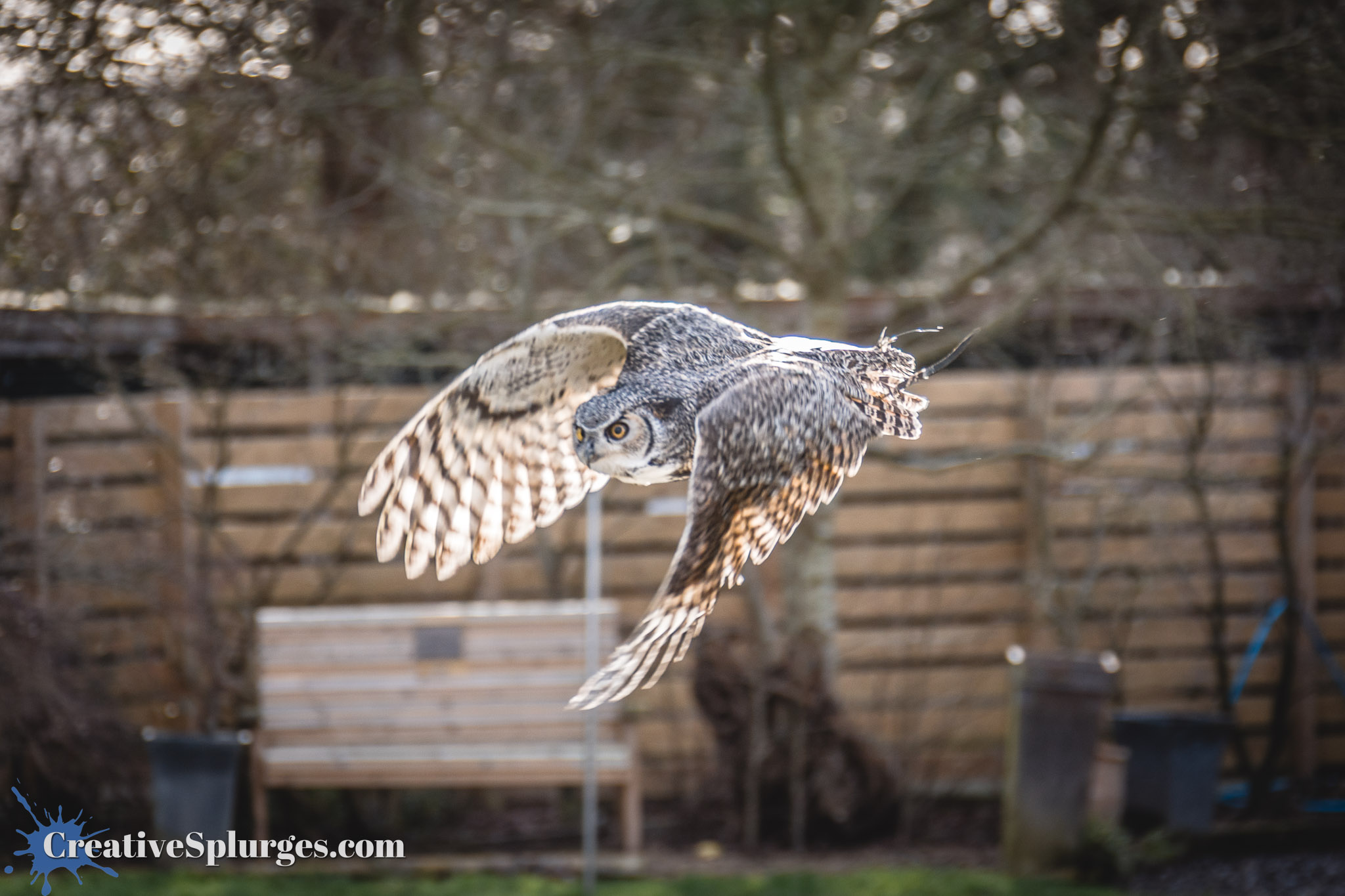 This being a flying display, soon the owl was tempted off her pole and I could try capturing her in flight.