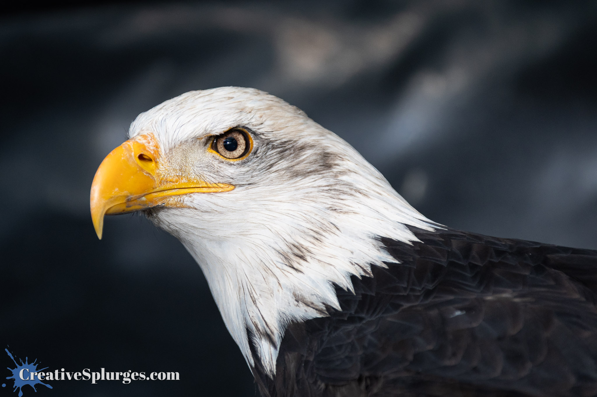 What really caught my eye though was this bald eagle. Yes, he was still in front of the largely unphotogenic black tarp, but with a bit of zoom, it added to the shot.