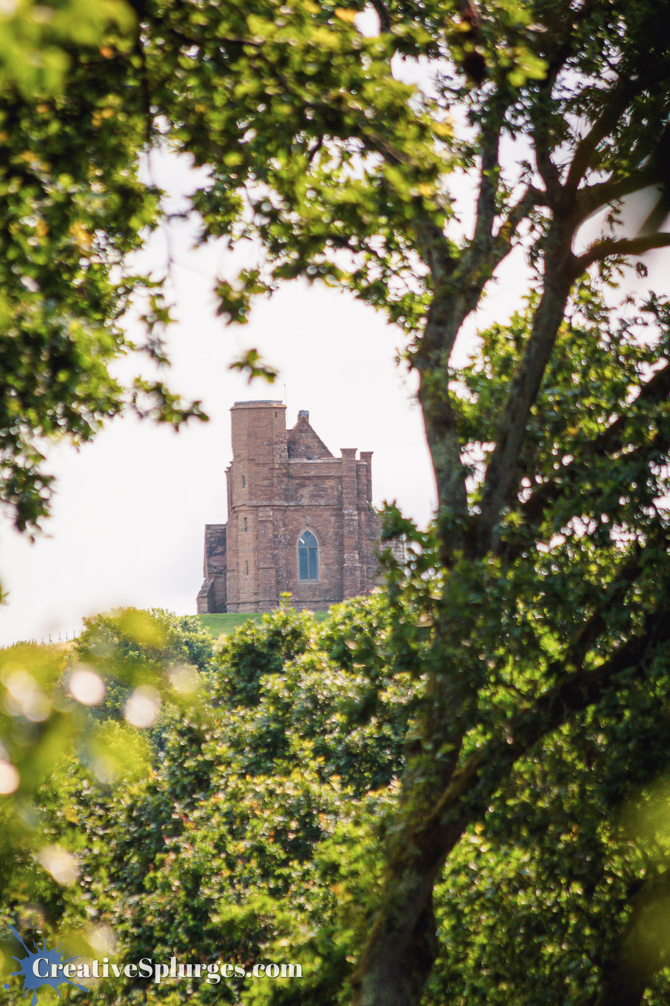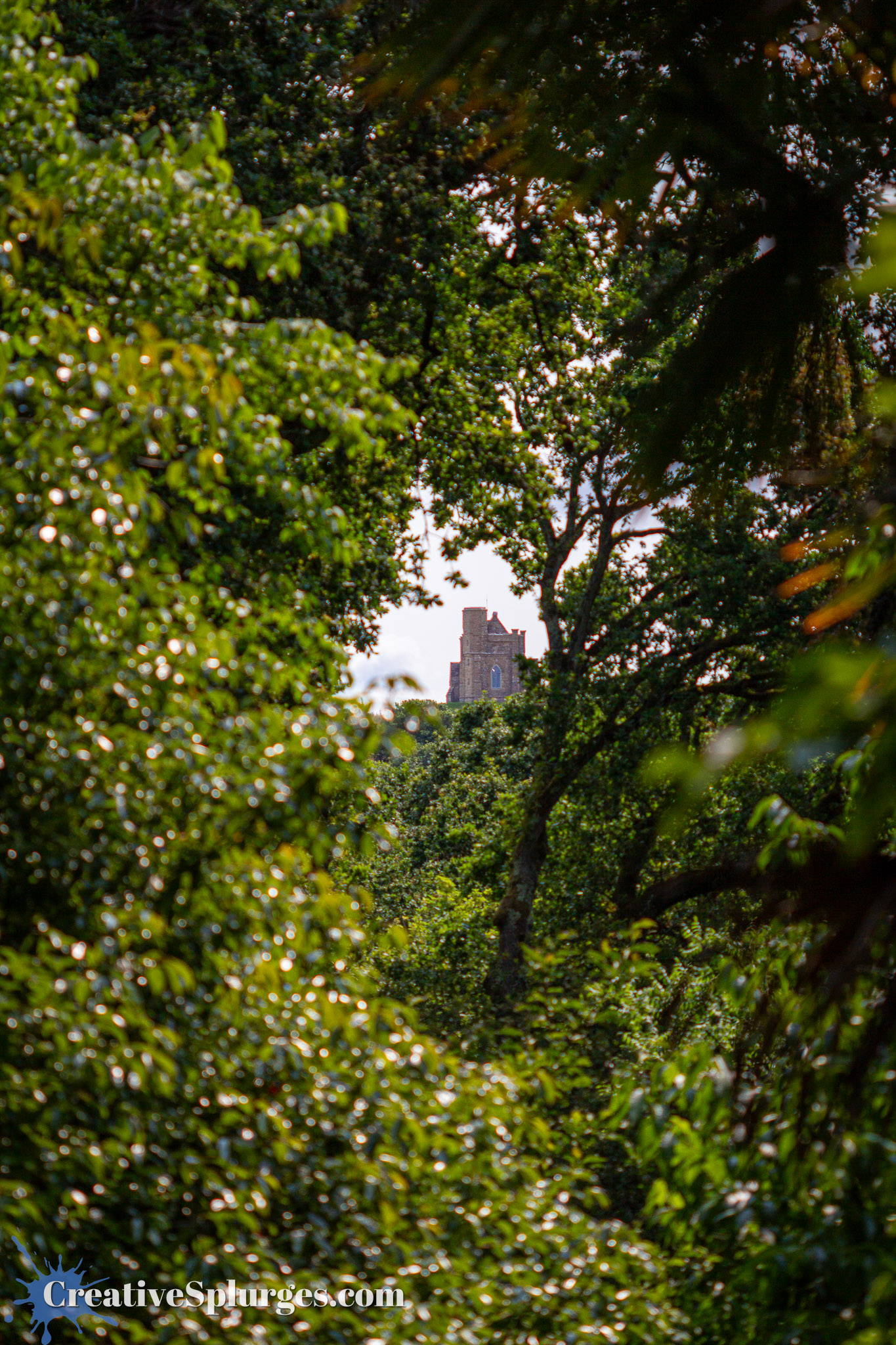 Up the hill from the gardens stands an old chapel. From most locations in the garden it isn’t visible, but there are a few spots where you can get a glimpse. When we found one, it was an excuse to switch to my 300mm telephoto (the longest I had at the time) to get a shot of it framed by the trees.