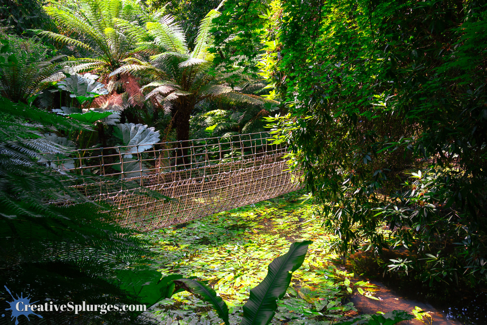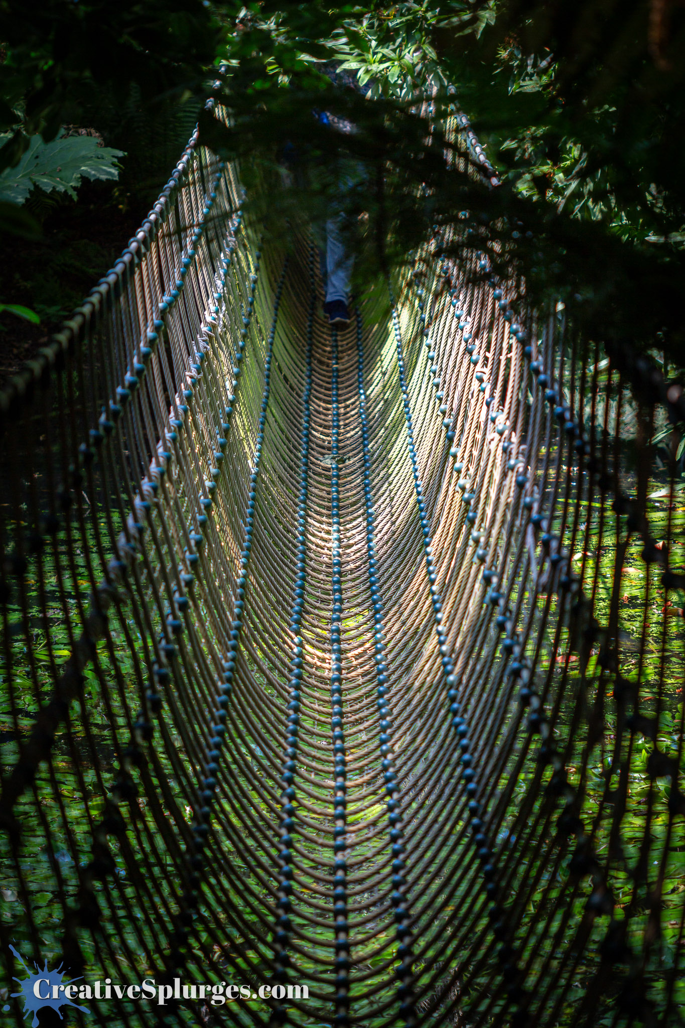 In one part of the gardens there was a rope bridge across a pond. At the time we were visiting it also happened to be catching the sun nicely. This finally necessitated the use of my normal zoom lens.
